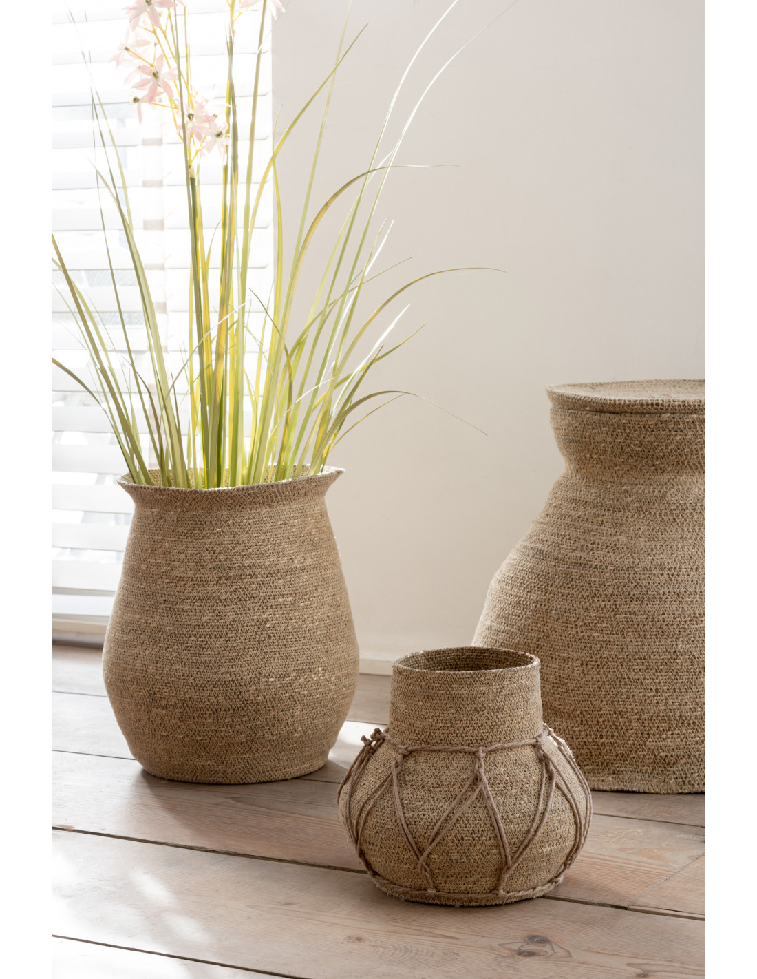 ZOKY - Vase original rond en herbes marines naturel 21 cm