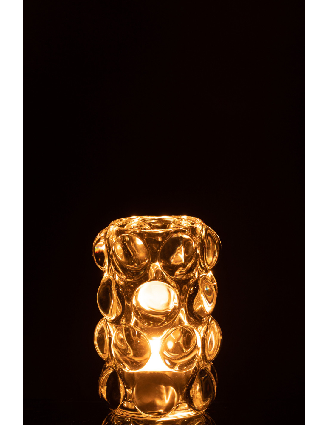 Photophore moderne boules relief en verre transparent 12 cm